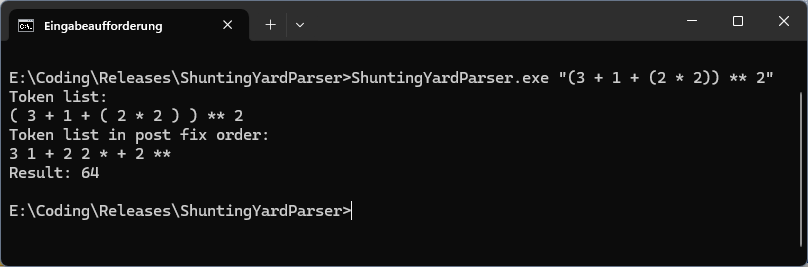 Download Shunting Yard Parser example applications (source code and executable; Visual C# project, 134 kb)