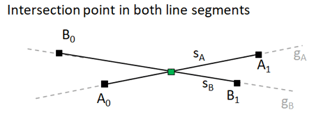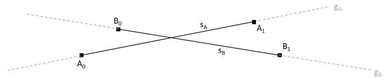 In total, this means that both line segments partly overlap if either s(B0) is in range [0, 1] or s(B1) is in range [0, 1].