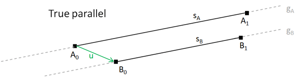 The infinite line gA is defined by the points A0 and A1. The line segment between A0 and A1 is called segA and its vector is further noted as a.