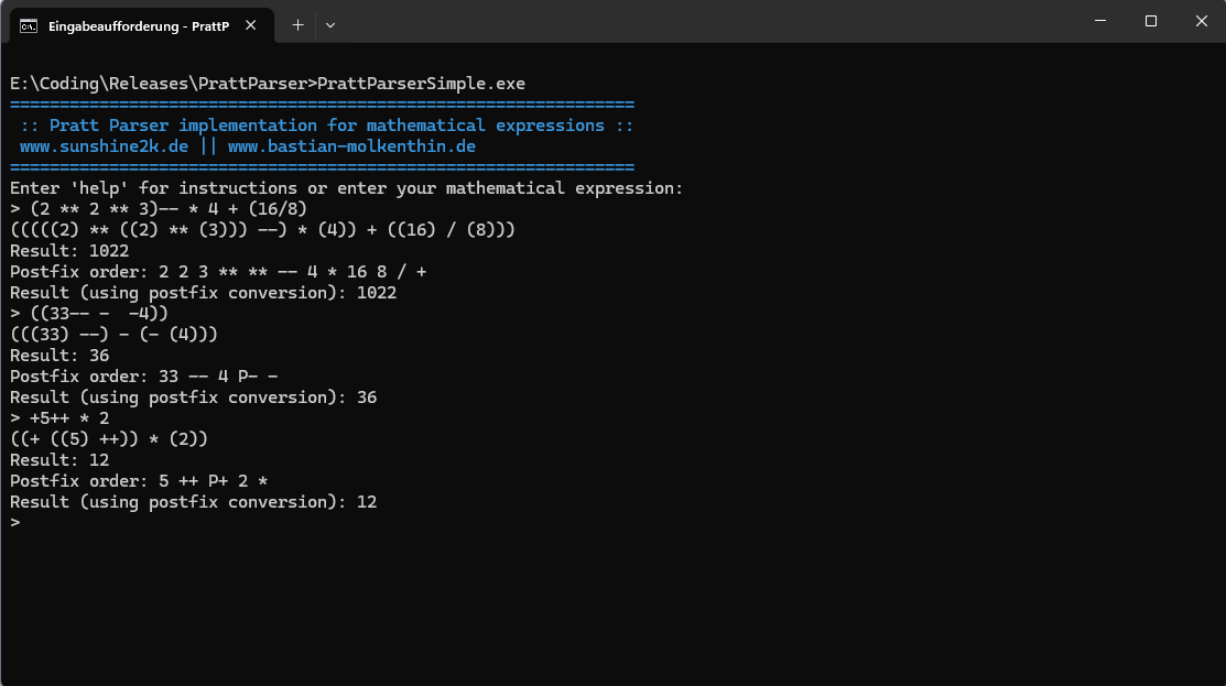 Download Pratt Parser example applications (source code and executable; Visual C# project, 56 kb)